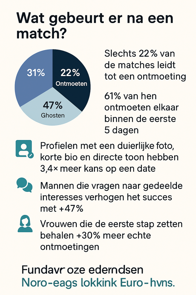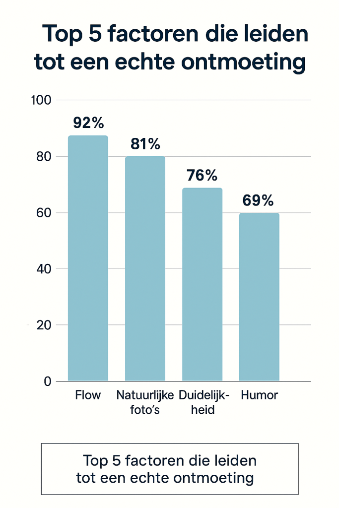 • Profielen met een duidelijke foto, korte bio en directe toon hebben 3,4× meer kans op succes.